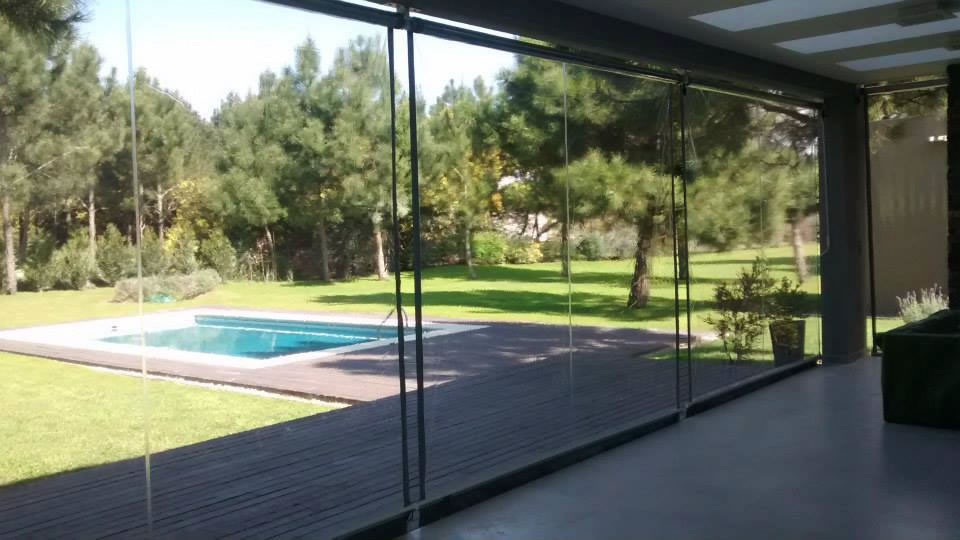 Ideal para balcones y galerías, simples, con mecanismo enrollable. Se les puede adicionar brazos de origen italiano que permiten proyectar el plano hacia afuera con una extensión máxima de 0.50 mts.